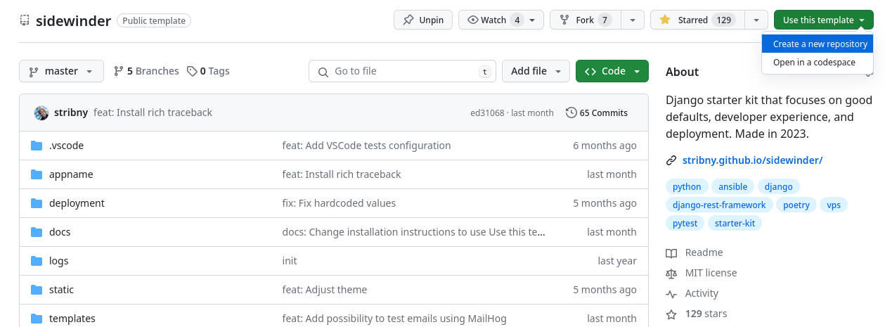Template repositories on GitHub