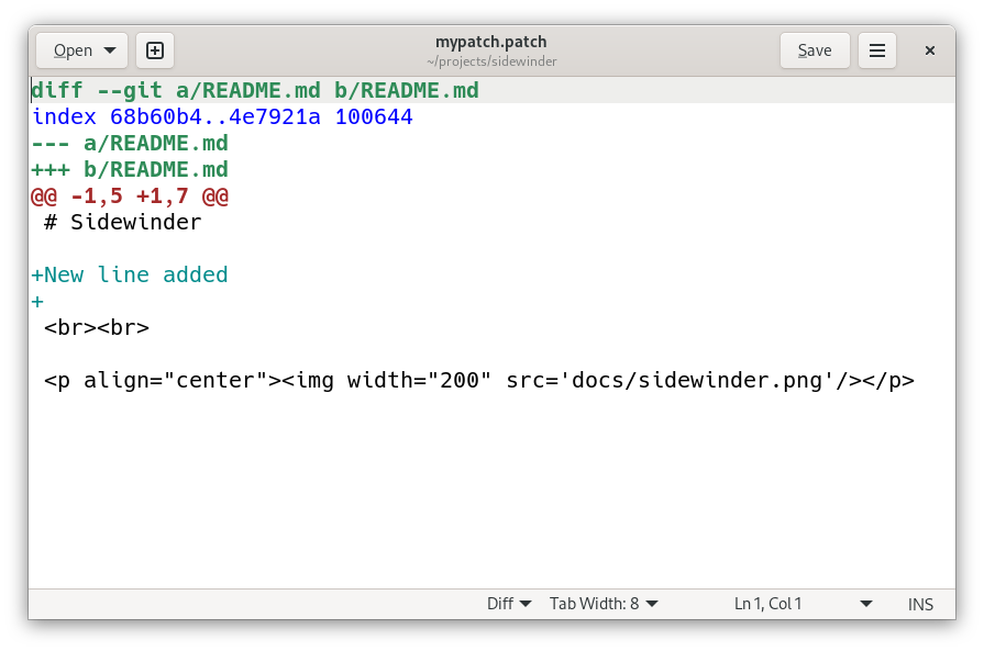 Such patch file can be opened and examined in a code editor with syntax highlighting: