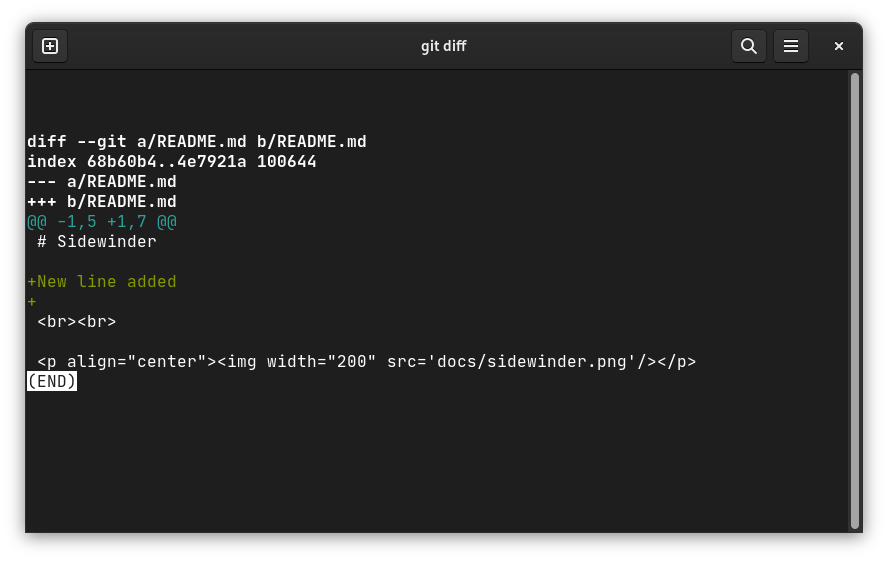 Many of you most likely used the git diff command to see changes before making a commit. It looks like this: